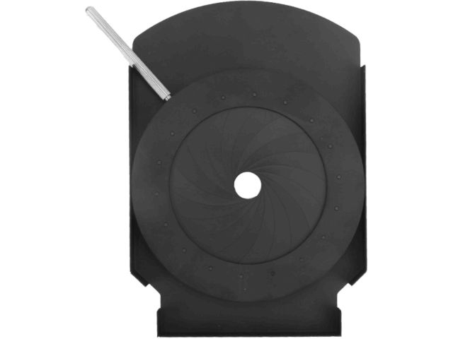Ce diaphragme est spécialement conçu pour prendre place dans un des 2 porte-gobo de l’Aputure Spotlight Mount. Il peut ainsi être utilisé en même temps que le gobo de votre choix. Le tiroir s’installe aisément en le faisant simplement glisser dans le fût de la Spotlight Mount.