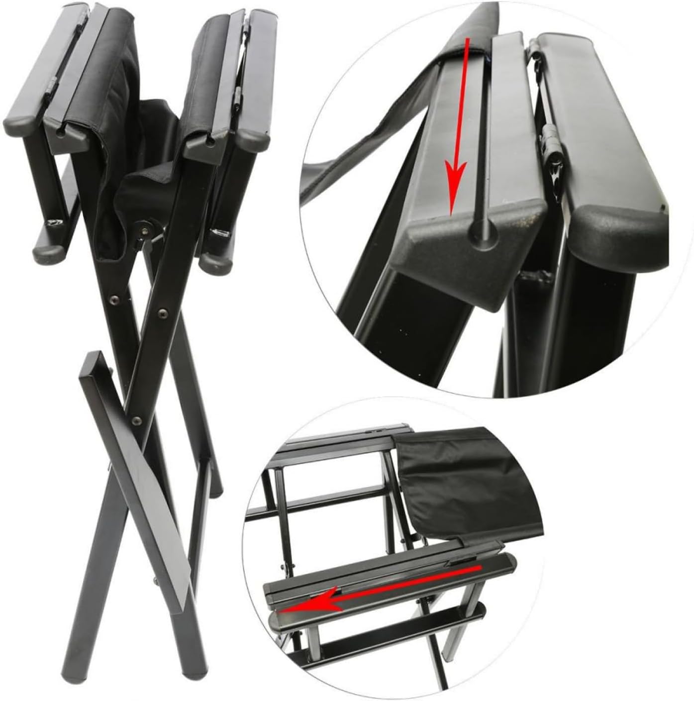 Chaise de maquillage professionnelle. Pliable, stable et facile à transporter – Noir – Moderne – Aluminium – Pliable – Rectangulaire – 52 x 43 x 108 cm