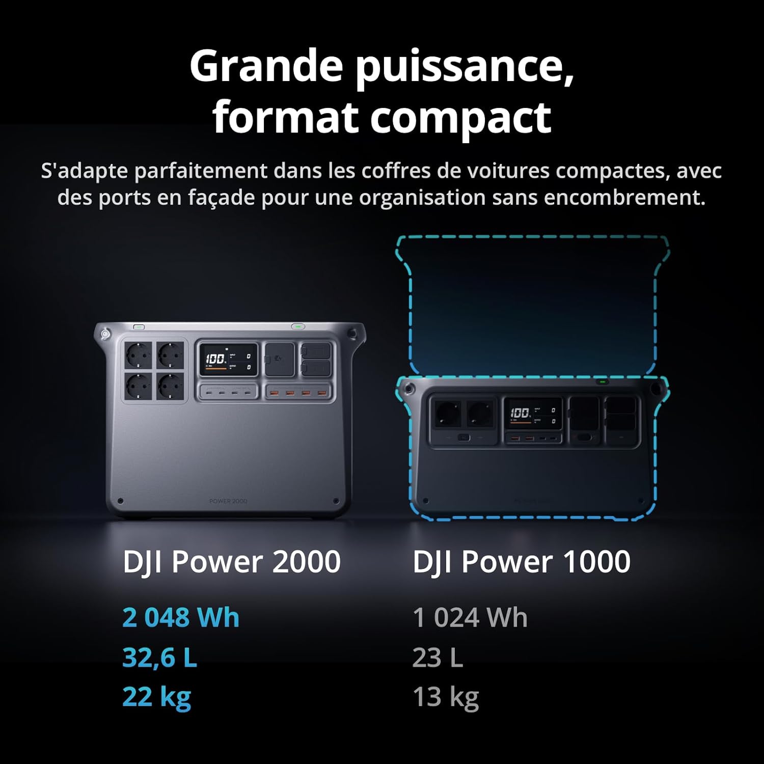 Avec la DJI Power 2000, l’énergie devient nomade, accessible et simple à gérer. Pensée pour alimenter une grande variété d’appareils dans des contextes très divers — usage domestique, road trip, tournage en extérieur ou vie en camping-car — cette station électrique portable de 2 048 Wh associe puissance continue et intelligence de gestion dans un format nomade. Elle délivre jusqu’à 3 000 W de puissance continue, sans baisse de régime, et propose jusqu’à 14 sorties différentes, dont des ports USB-C à 140 W, des sorties CA, SDC et USB-A.