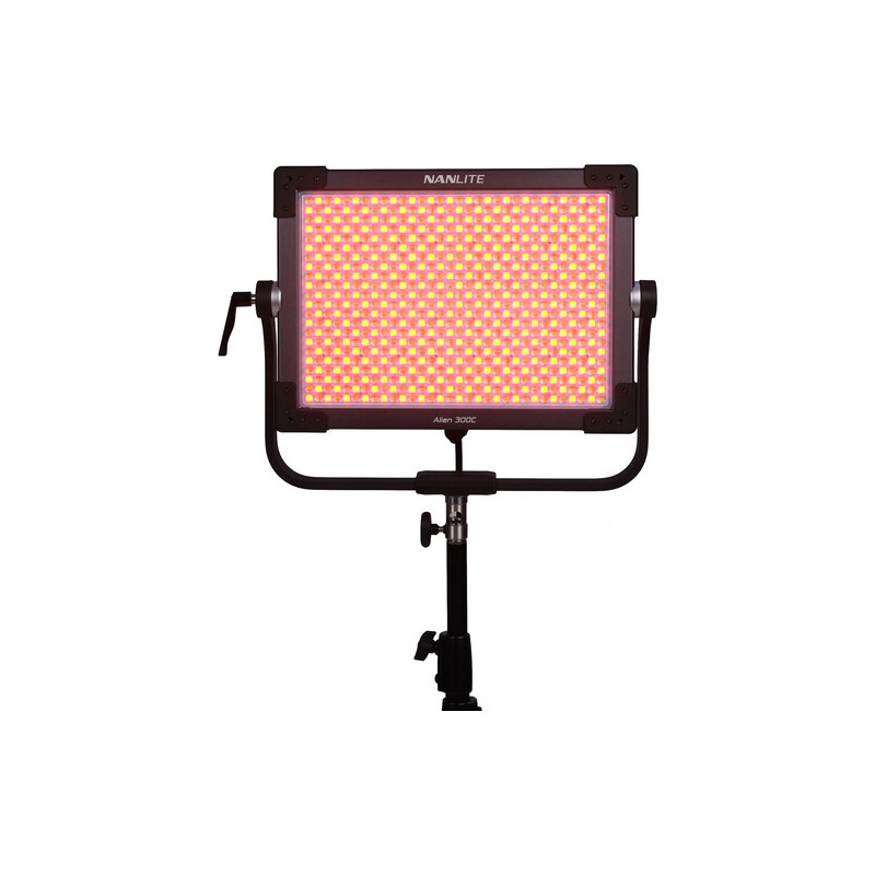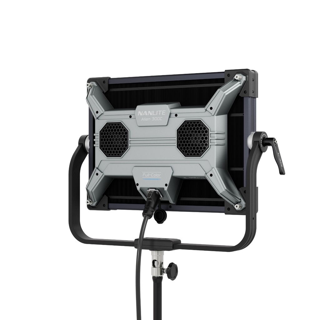 L’Alien 300C RGBWW LED Light Panel de Nanlite est un panneau à multiples facettes qui offre un contrôle complet de l’éclairage et une luminosité élevée. Il est compact, fait 20.2 x 17.8″ soit le double de la version 150C et propose un CCT allant jusqu’à 12 000 K. Il fonctionne sur secteur, batterie V-mount optionnelle. Il dispose de 15 effets et se contrôle via Nanlink, DMX/RDM et CRMX LumenRadio.