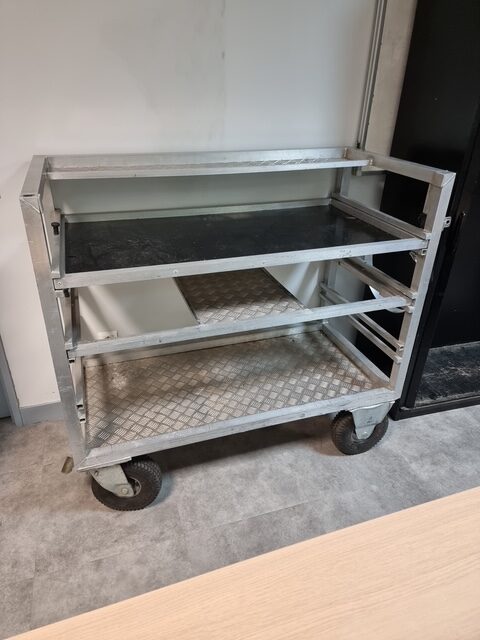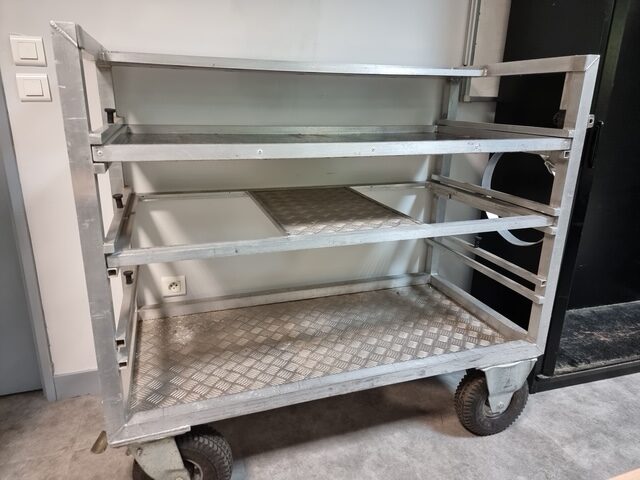 Roulante Régie en aluminium, roues avant directionnelles avec freins, roues arrière fixes.