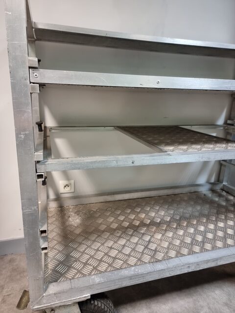 Livrée en standard avec 4 bacs Euro, 1 support sac poubelle et un Parapluie.