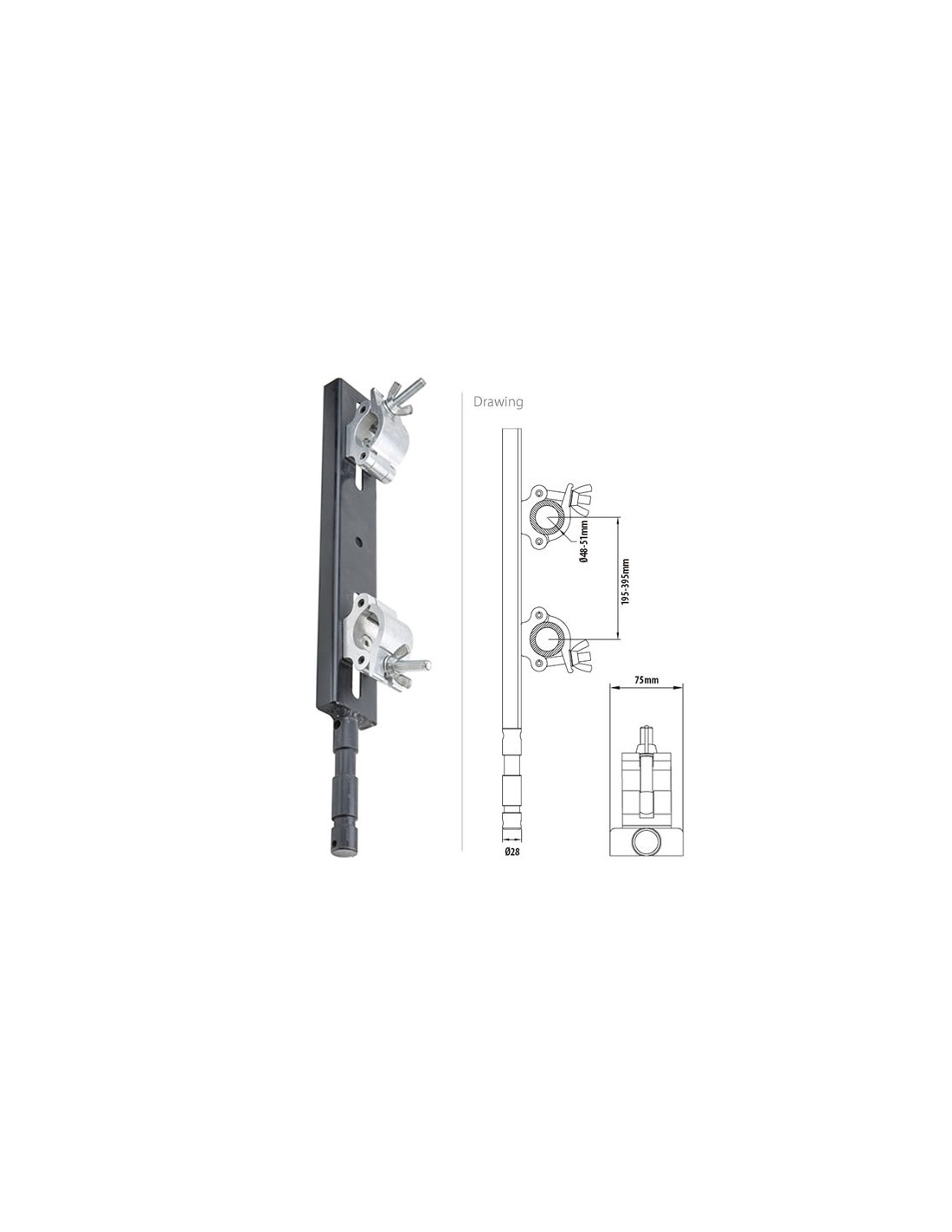 Le KUPO Truss Coupler Vertical KCP835V est conçu pour assurer un montage solide et fiable entre des structures tubulaires de 50 mm et des accessoires équipés d’un spigot de 28 mm. Avec sa longueur réglable de 200 à 400 mm, il permet une grande flexibilité d’installation pour répondre aux besoins spécifiques des configurations scéniques, audiovisuelles ou de tournage.